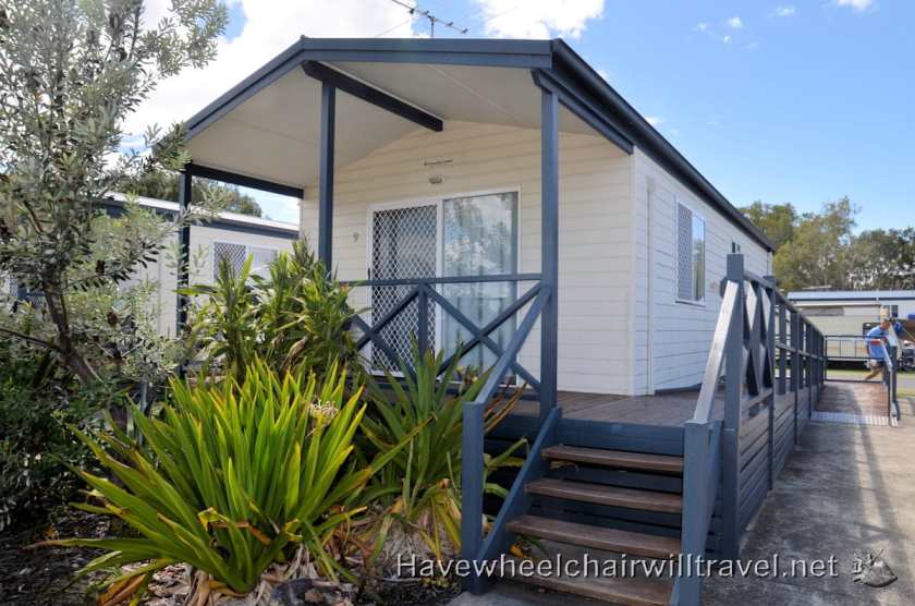 As with the Poolside Accessible Villa, this accommodation has ramp access from the car parking space beside the cabin to the deck and entry.