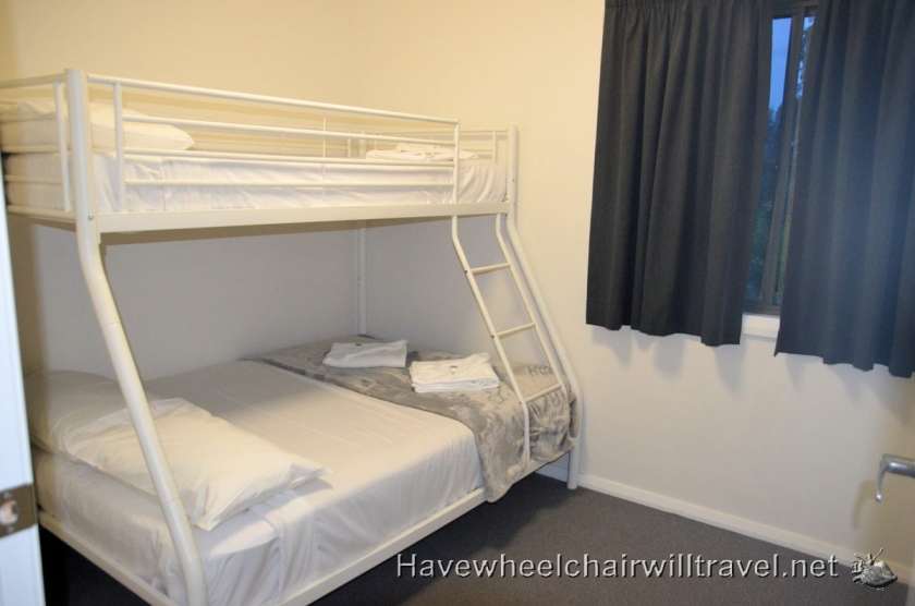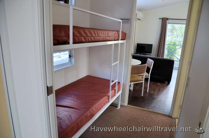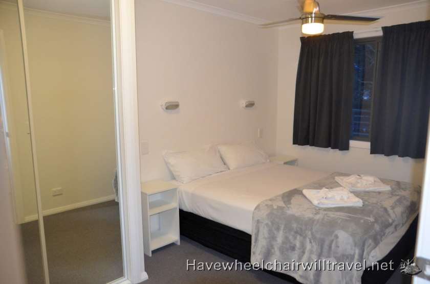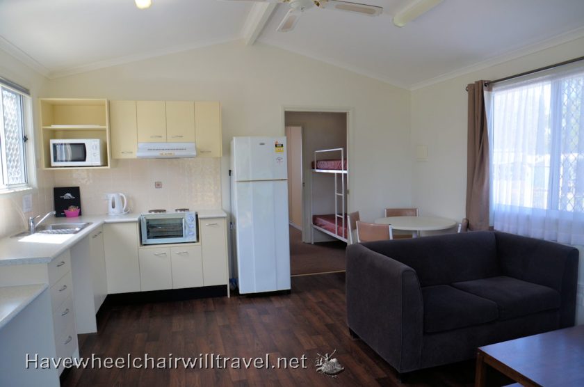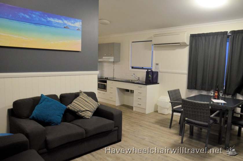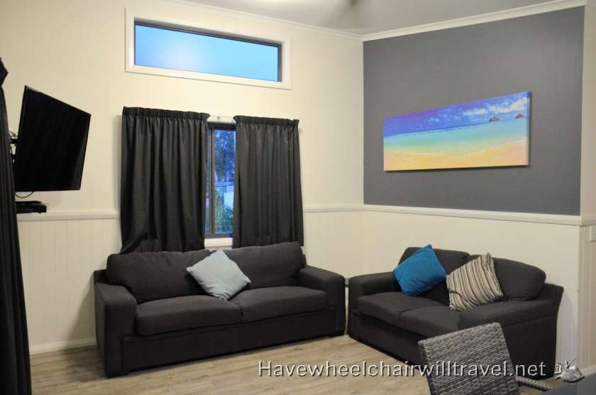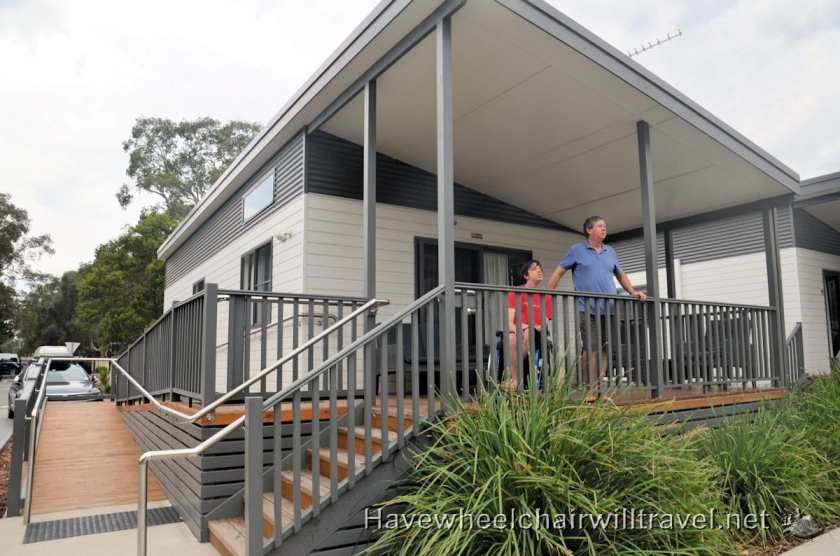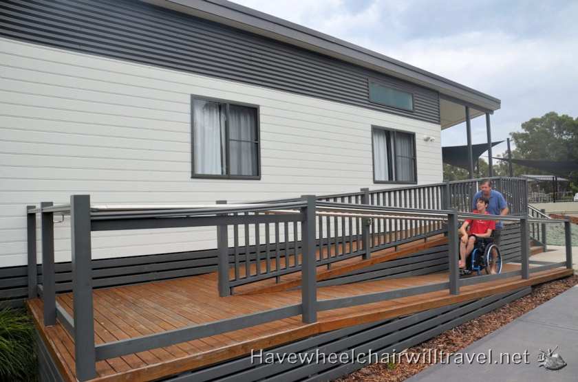 As with the Poolside Accessible Villa, this accommodation has ramp access from the car parking space beside the cabin to the deck and entry.