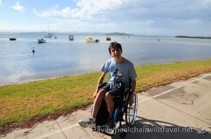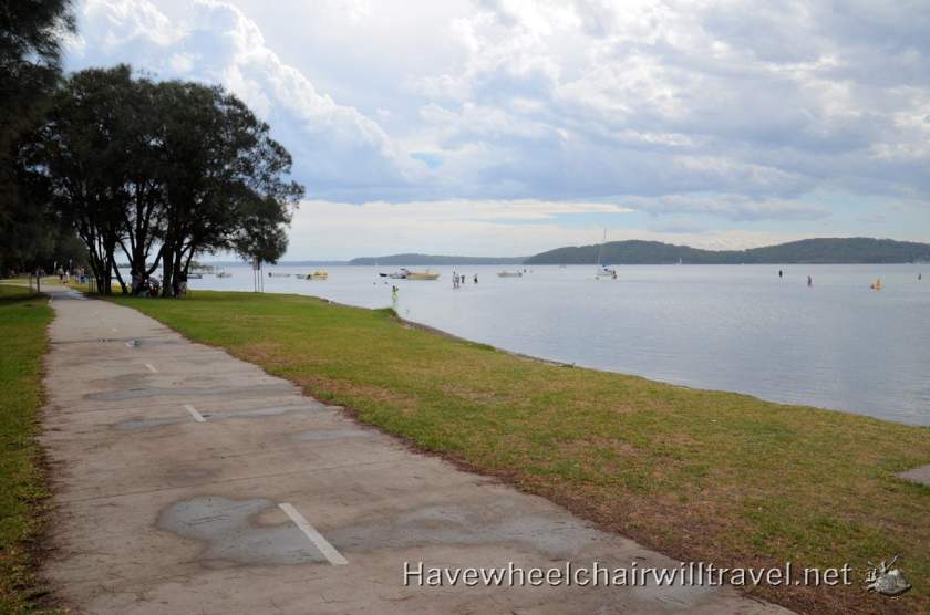We are always glad to leave the car behind and take a nice walk and wheel somewhere scenic. Just through the back gate of the holiday park is a shared pathway which runs along Lake Macquarie. It’s not a long walk but a really pleasant walk and had we been staying longer this would have been an ideal spot to take BJ swimming. He would enjoy the calm waters and the shallow entry to the Lake.