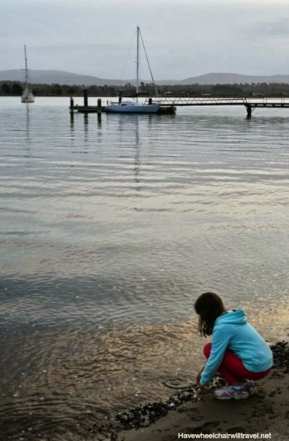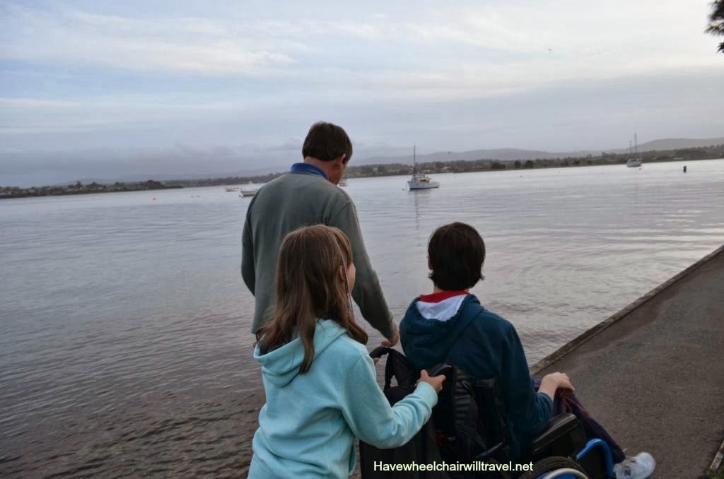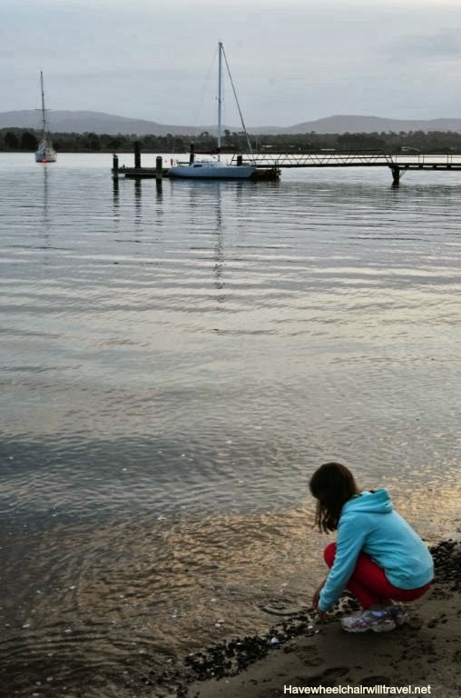 Arriving ahead of schedule we headed into George Town (the town before Low Head) to see if we could find somewhere to have an early dinner. The Pier Hotel, the local pub, was the perfect spot. It was by the water, had ramp access and a large accessible bathroom. The pub menu was family friendly with pizza, burgers and other casual food.