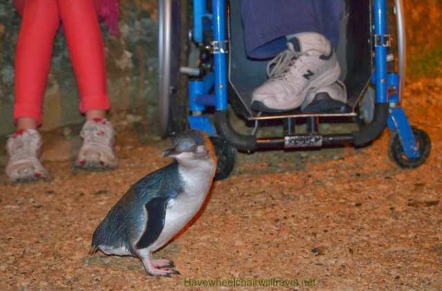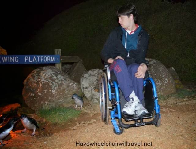 Shirley our tour guide, is a determined lady and she was on a mission to ensure BJ had a close encounter with the penguins. Her knowledge of their routine meant that she knew exactly where to place BJ in his chair to have the penguins walk right on by. The penguins were a little wary, not of the wheelchair, but when BJ made sudden movements. I don’t blame them as they are only 30cm in height so I am sure he must have seemed a giant in his chair.