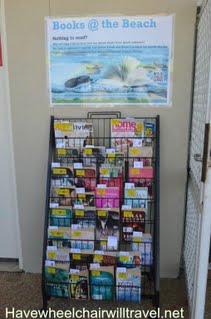 Flynns even has books and magazines for you to borrow if you forgot your own (I can but dream that a trip to the beach would involve lying down reading a book!) It is a local council initiative which proves that the honour system is still alive and well in the country! The other thing we liked about Flynns was that the sand was very even when using the beach wheelchair in the water, no great holes or dips but that could change of course from day to day with conditions. For the week we visited it was great. We even had four dolphins swim by while we were at the beach proving we had picked a great spot.