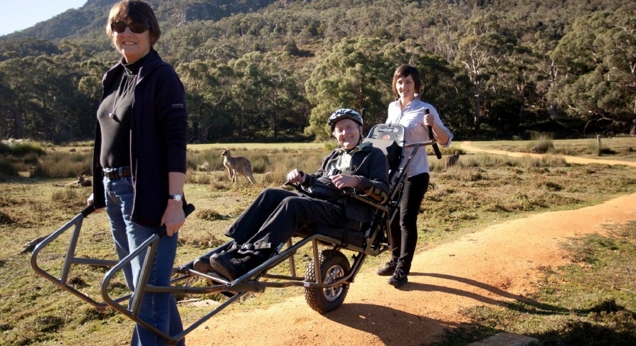 Back in Australia we laminated Ros’ photos and took them to the Grampians, our closest ‘wild place’ and showed them to David Roberts, the head ranger at the national park. His face lit up. He immediately got the point and he knew who to talk to within Parks Victoria – John Kenwright. Not long before, Parks had launched their Healthy Parks, Healthy People program, that linked human well-being to that of National Parks. The TrailRider precisely fitted between natural wild places and the needs of the disabled.