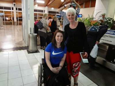 We took my manual chair as my power chair wouldn’t be too happy in sand. The plane trip there from Christchurch NZ was just outstanding. We flew with Jetstar to Auckland, and they were nothing but helpful. They took me on to the plane first, giving me the option to take my own chair or borrow one of theirs. They helped me to my seat and made sure we were all comfortable before boarding the rest of the passengers.
