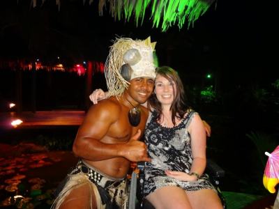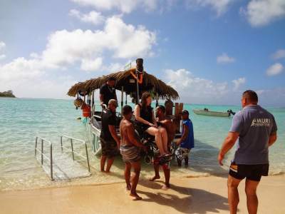 We did the Koka Lagoon Cruise too. I cant speak highly enough of it. They carried me and my chair on to the boat first (2 very handsome men by the way… was a very enjoyable experience!) until I was comfortable then brought the rest of the people on. We even went snorkelling, and the captain carried me off the boat, and had flotation devices all ready for me. He lifted me in to the water and held on to me the whole 45 minutes we were in the water. He took Mum and I personally to see the eels, coral and even let me feed the fish. There were thousands of amazing fish, words can’t describe. It was magnificent and it gave Mum a chance to just enjoy the experience too, which I was really relieved about. He asked if I was tired but I was enjoying myself so much I said no. So we stayed another 10 minutes…little did I know everyone else had already got back on the boat! They have a saying over there ‘island time’ there is never a set time to do anything so it didn’t bother them at all! When we got to the island they always checked I was ok and carried me anywhere I needed to go. We even did crab races (with sand crabs) and I won! My prize was a coconut!