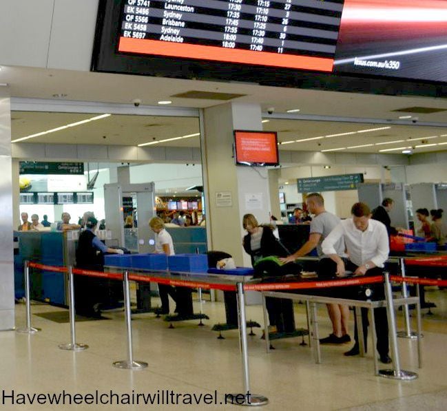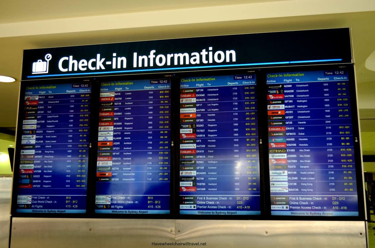 If you’re travelling domestically with a wheelchair, do not check-in at the kiosks. You need to look for the special assistance requests check-in desk (try saying that quickly three times in a row).